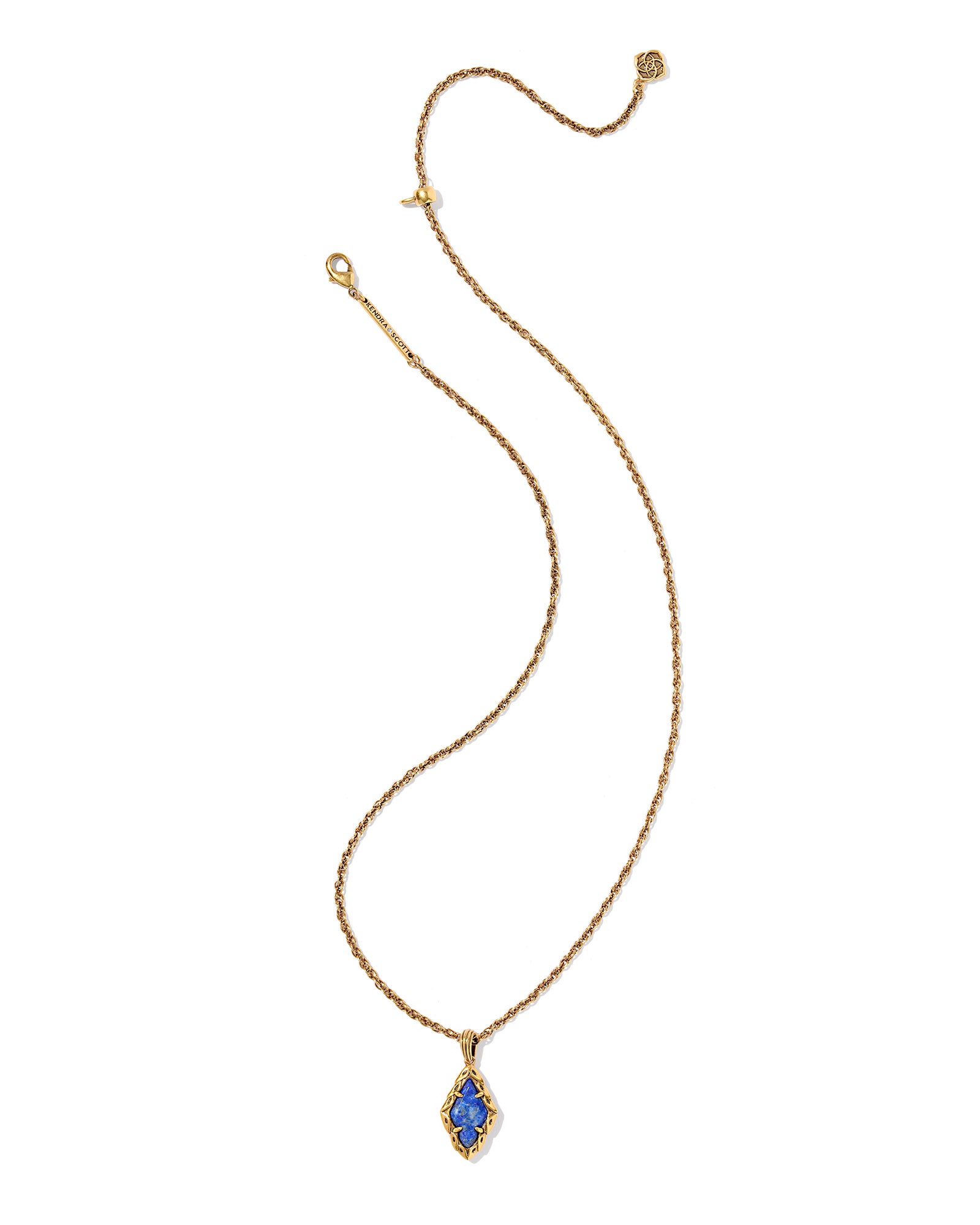 ADELINE SHORT PENDANT NECKLACE VINTAGE GOLD BLUE LAPIS