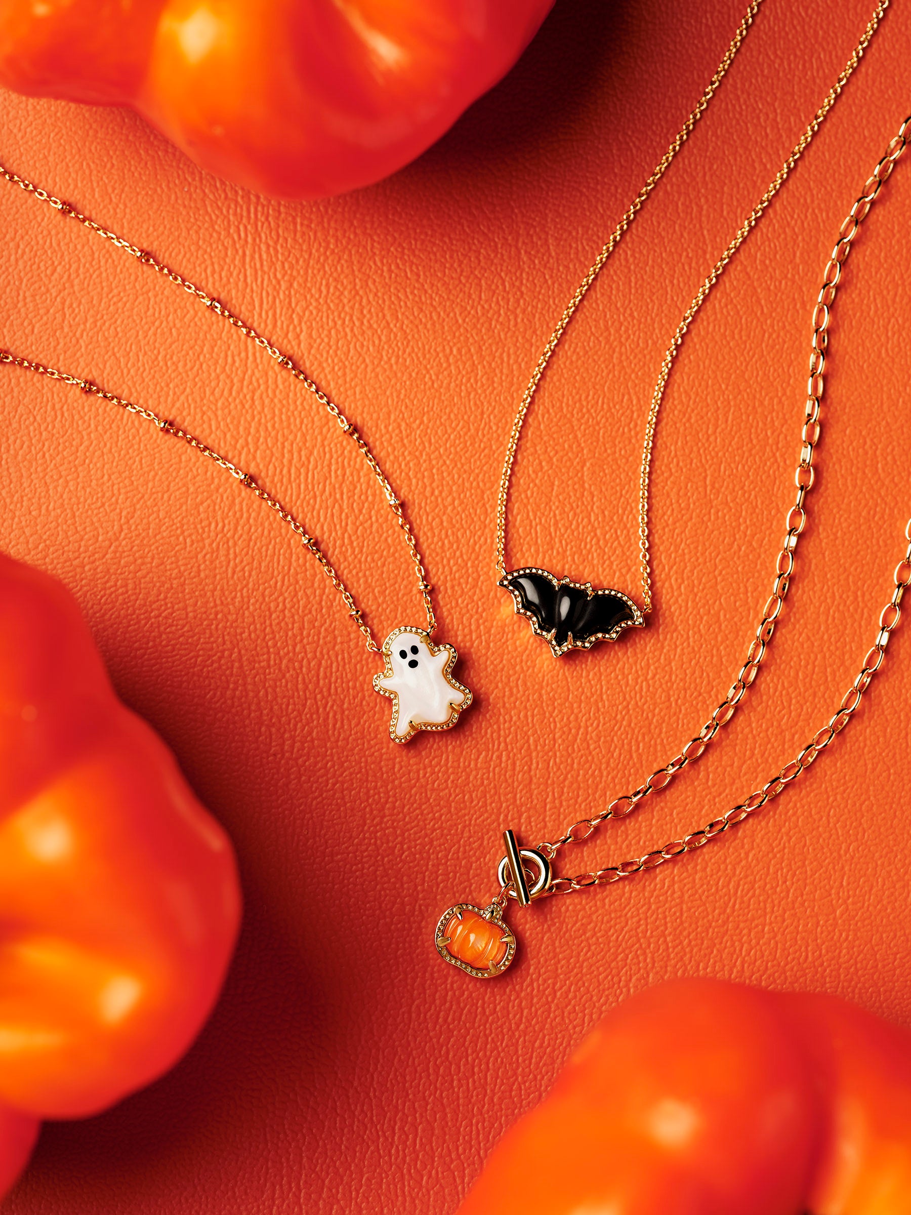 Get ready to look fly and festive in the Bat Gold Short Pendant Necklace. With an adorable bat pendant framed by our signature hoofprint detailing, this necklace is a spooky season must-have.