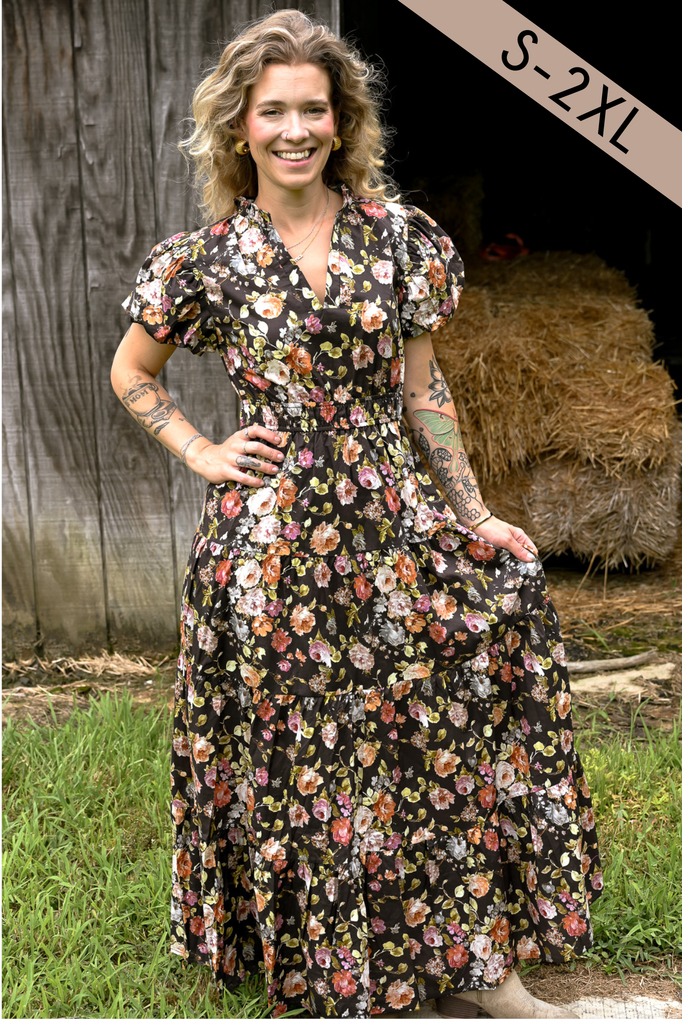 Floral Chocolate Tiered Maxi Dress