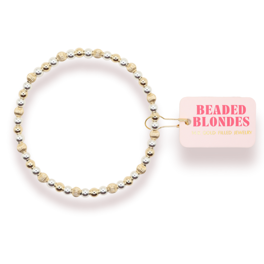 The Haven is a mixed metal 4MM fluted, 4MM Gold & 4MM Silver alternating bracelet.