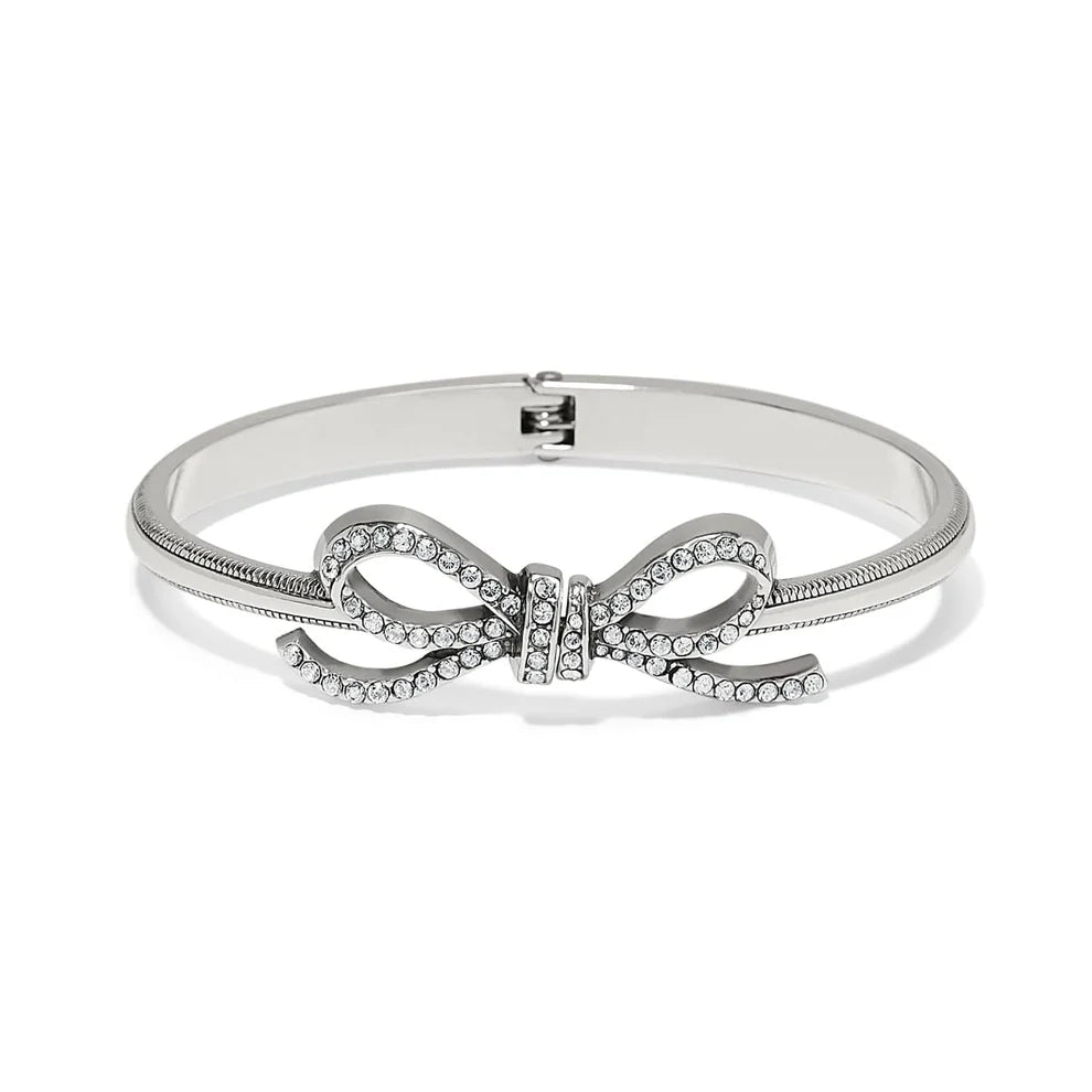 The Illumina Bow Bangle is shimmery and delicate with a bit of whimsy. It truly has the characteristics of a real ribbon delicately knotted. Glistening with pave stones throughout, it looks like fine jewelry and appears to have movement, like a real ribbon. It is so delicate you could wear it with a simple white tee and jeans.