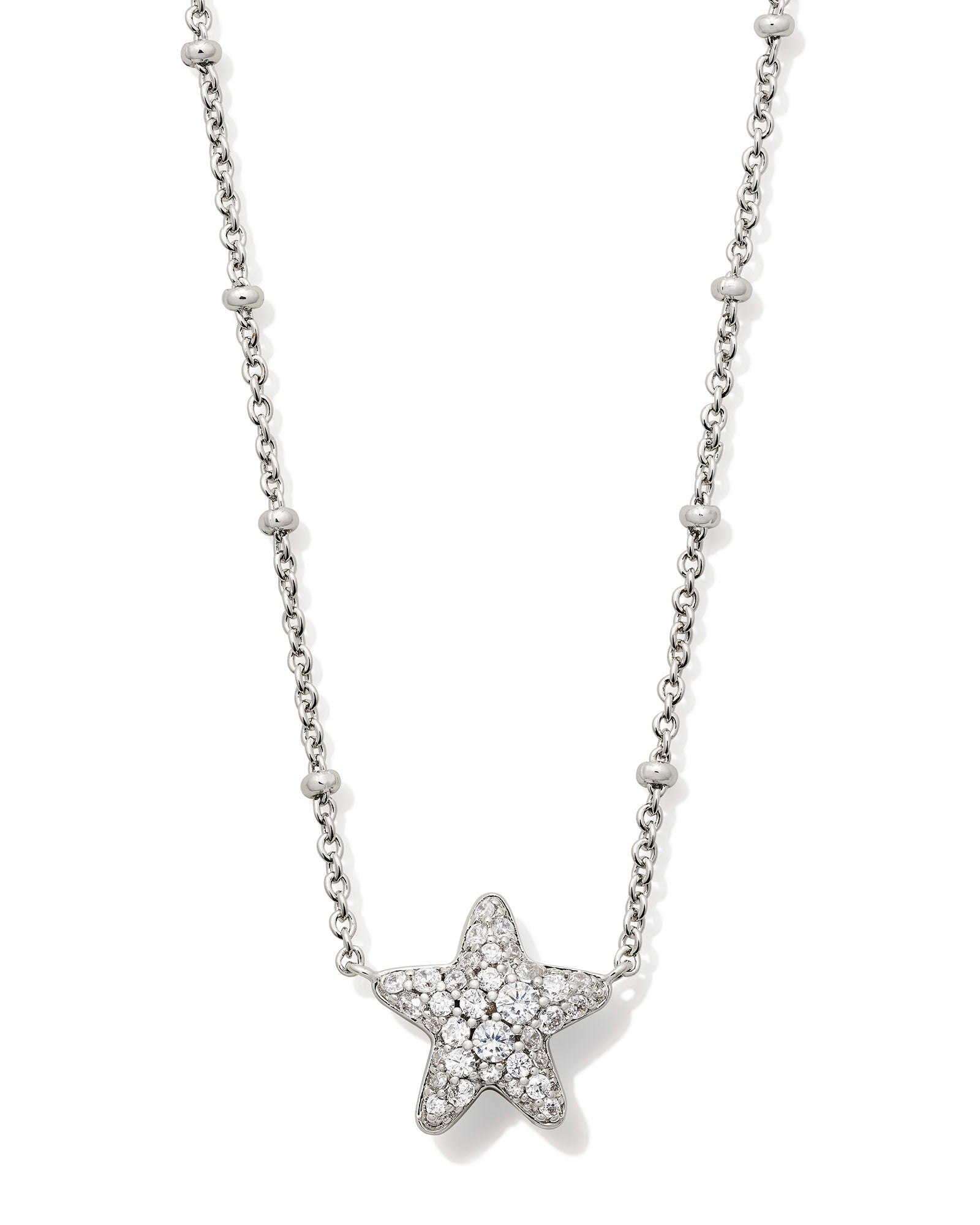 JAE STAR PAVE SHORT PENDANT NECKLACE IN SILVER WHITE CRYSTAL