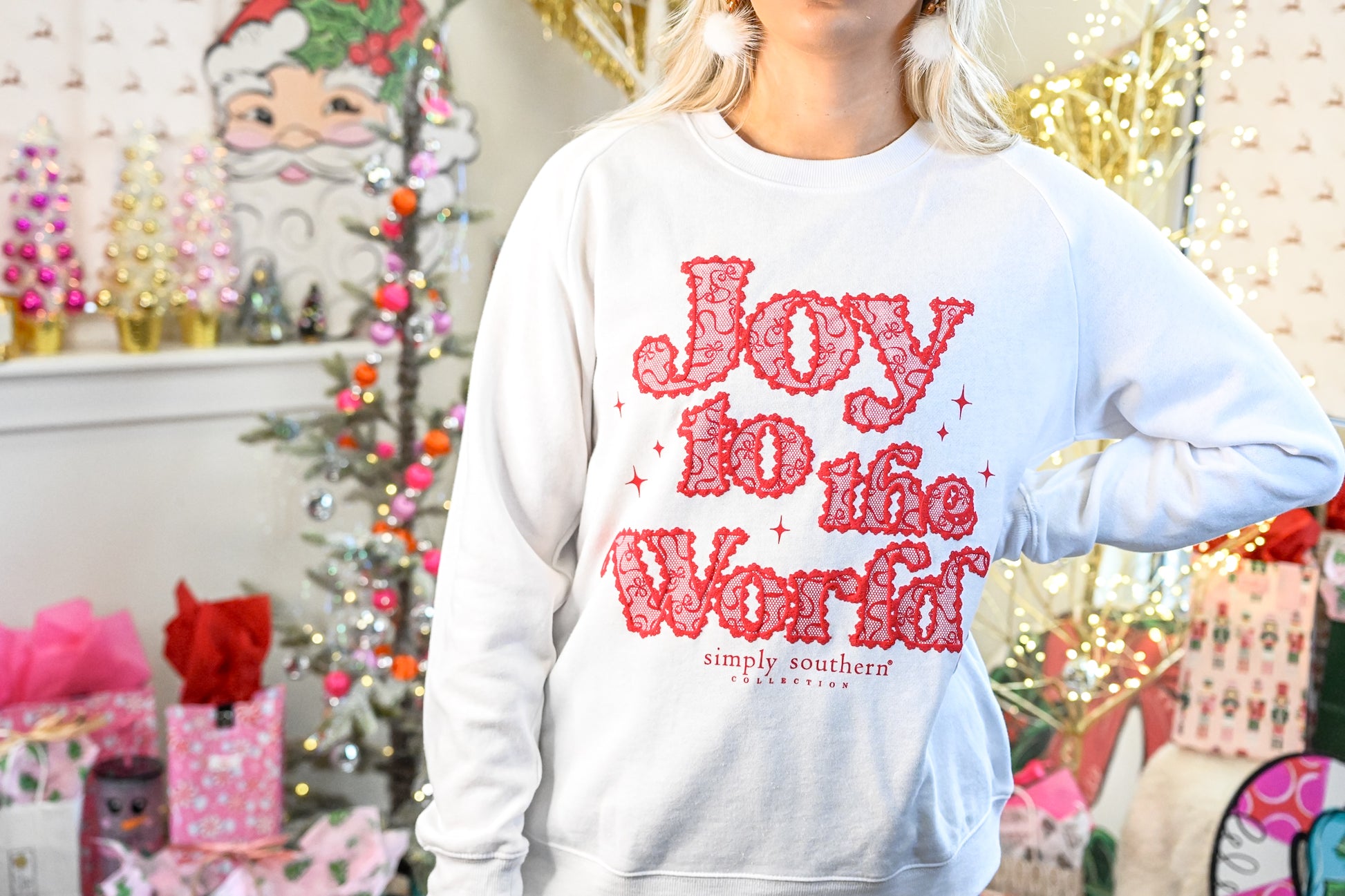 Joy to the World Red Lace Crewneck