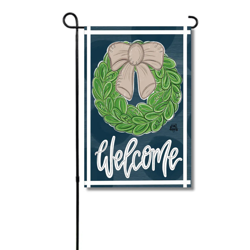 Brighten up your outdoor décor with the Mocha Wreath Glam! This is not your ordinary garden flag. It’s a glamorous décor piece featuring a leafy wreath with a mocha bow and a "Welcome" message.