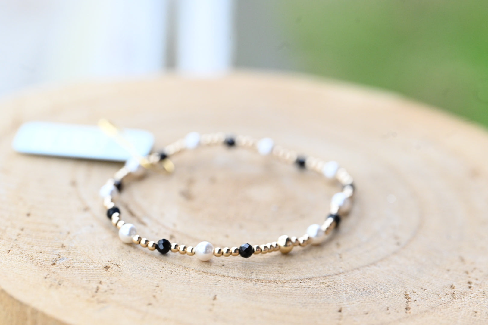 You will fall in love with this classic gold sincerity pattern 4mm bead bracelet with pearl and gemstone.