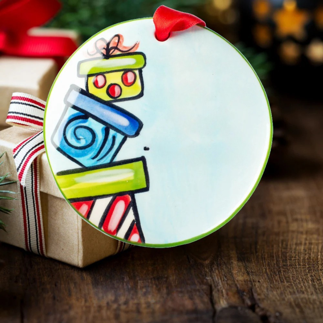 - Shape: Classic disk-shaped flat ornament, perfect for any tree
